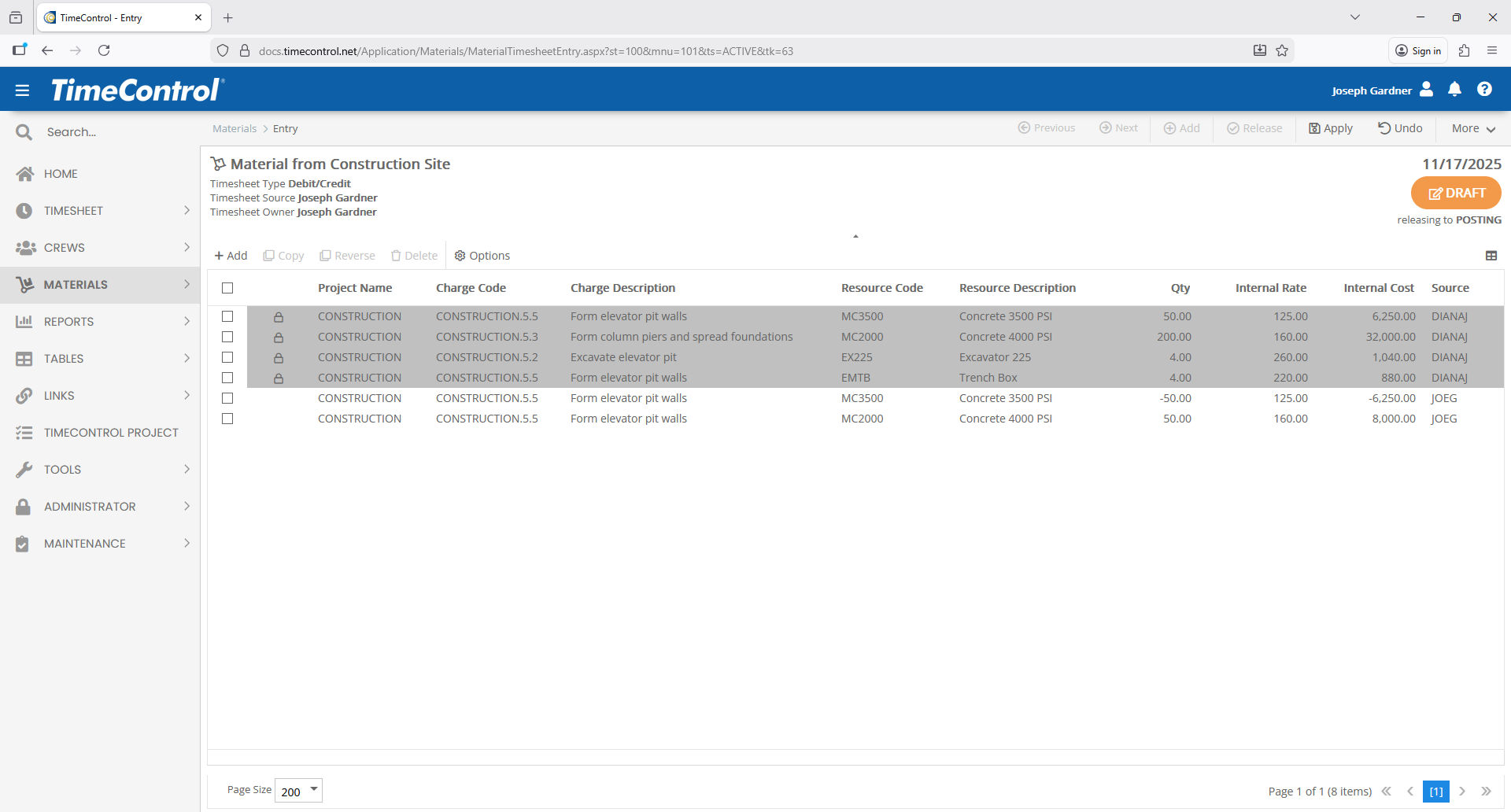 Auditable Debit/Credit adjustments is one of those features that empowers TimeControl data to be count-on-able by Finance. We’ve now extended this functionality in TimeControl Industrial and TimeControl Industrial Online to allow a Debit/Credit to be created for Posted Materials entries. TimeControl’s Material Entry allows material consumption, equipment usage and other non-labor entries to be tracked. The Material Debit/Credit functionality will allow entries to be adjusted or corrected after posting in a way that allows the changes to be tracked and auditable.